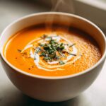 Oh, how I love dressing up this humble carrot soup! A crusty baguette is my must-have for dipping – that satisfying crunch against the creamy soup is pure bliss. For special occasions, I’ll swirl in a drizzle of coconut milk and sprinkle with fresh cilantro or chives. A dollop of Greek yogurt adds lovely tang, while toasted pepitas give perfect crunch. Honestly though? Sometimes I just grab a spoon and enjoy it straight from the mug – no frills needed!